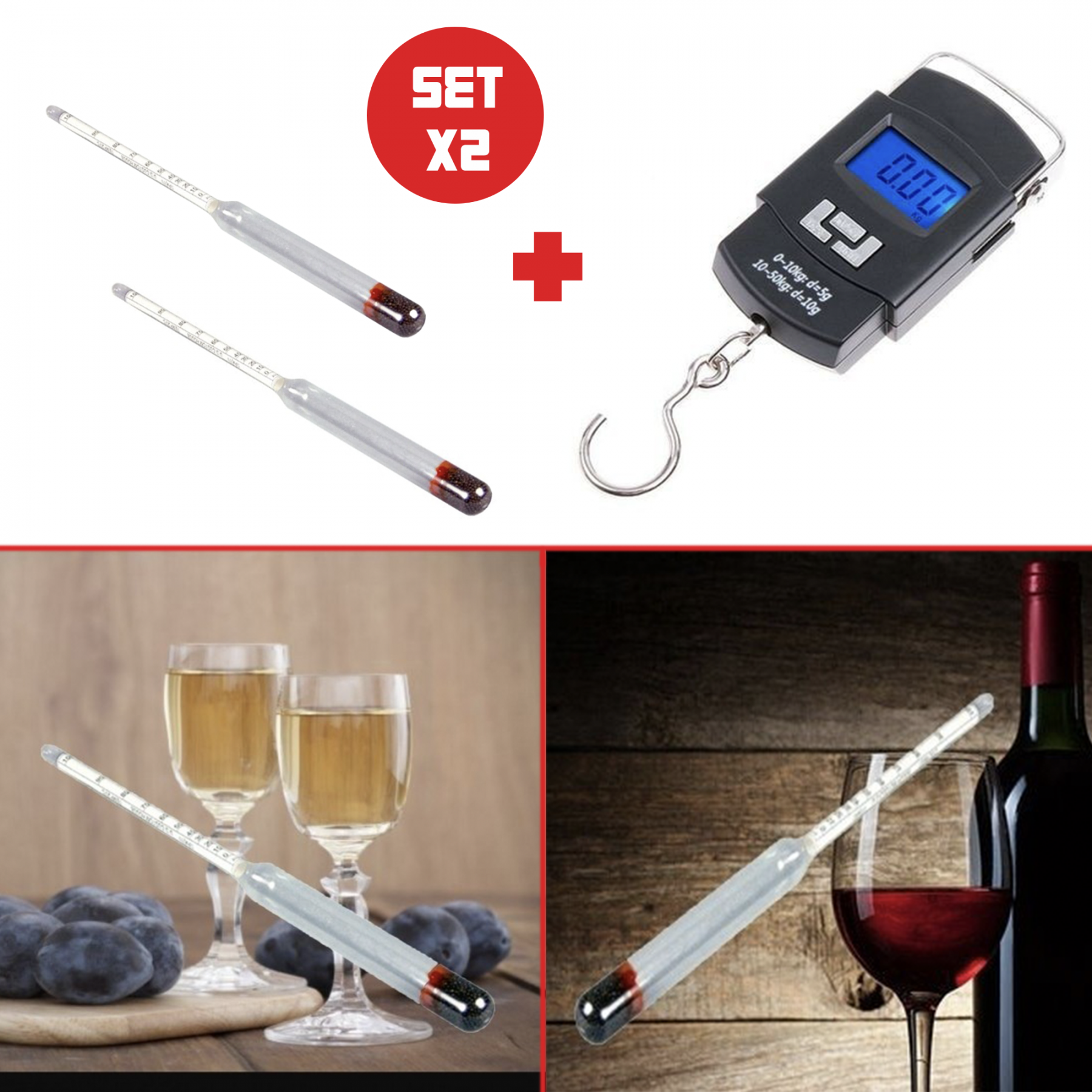 Acest instrument de masura a alcoolului dispune in interiorul tubului de doua scale gradate pentru citirea nivelului de alcool (de la 0 la 25 grade) respectiv citirea concentratiei de zahar din vin (de la 0 la 25).