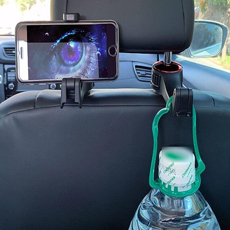 Un suport de tetieră multifuncțional, pentru pasagerii de pe bancheta din spate. Cu ajutorul acestui suport, puteți urmări confortabil orice de pe telefon, atunci când vă aflați pe bancheta din spate a mașinii. Ideal pentru copii, pentru a viziona desene animate sau a juca jocuri. În plus, îl puteți folosi și pentru a agăța rucsacul cu jucării al copiilor sau o geantă de mână sau haine, pentru a le avea la îndemână. Poate fi pliat atunci când nu este utilizat. - Recenzii