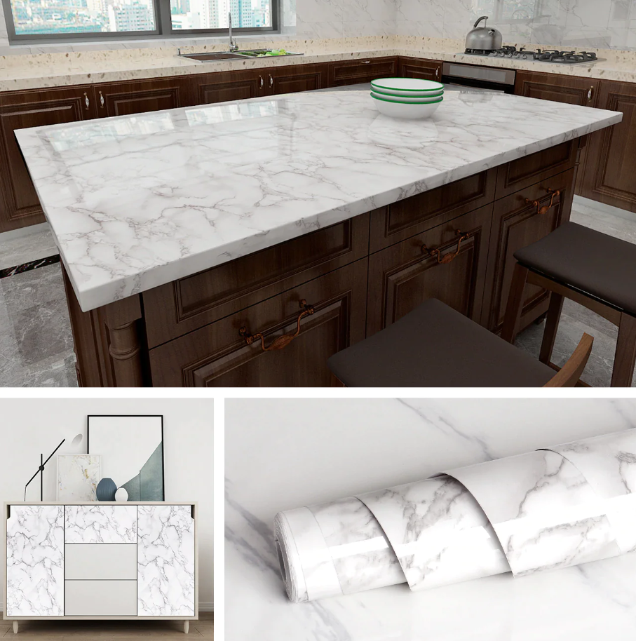 Autocolant imitaţie de marmură este perfect pentru a crea un aspect nou, precum şi pentru a repara suprafeţe deja deteriorate.