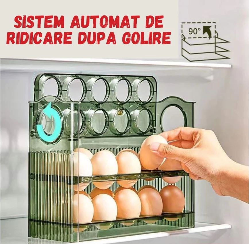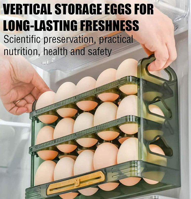 Design cu 3 straturi: Tava de organizare a ouălor pentru cele două straturi superioare ale frigiderului poate fi răsturnată când fiecare strat este epuizat, este mai ușor să luați ouăle și să le puneți în el.