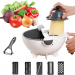 - Puteti alege une din lamele de otel inoxidabil interschimbabile aflate in pachet. In timpul rasului ajutati-va de accesoriul pentru a tine fructele si legumele in siguranta pentru a nu va taia . Legumele feliate sunt colectate intr-un bol cu strecuratoare incorporata