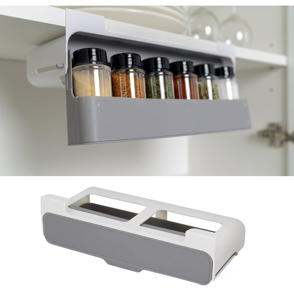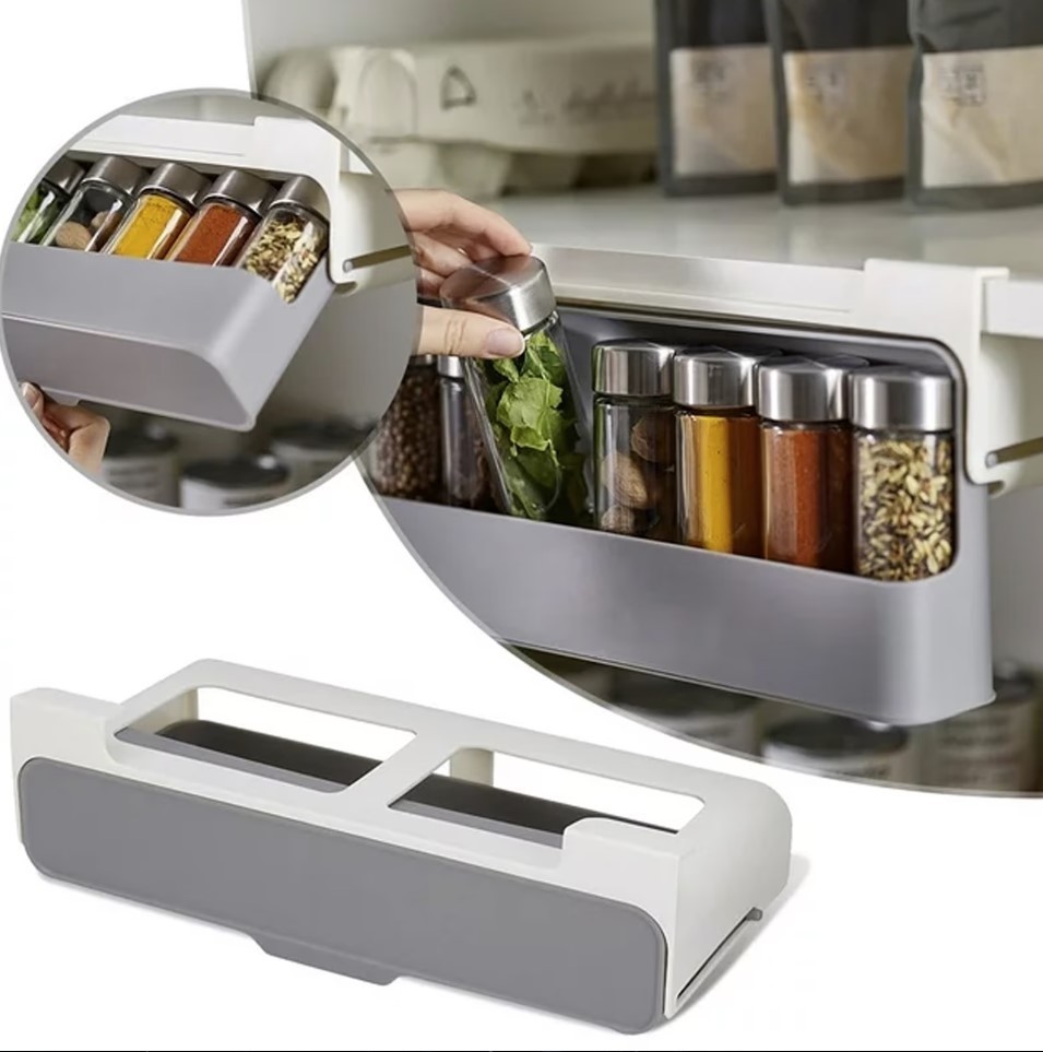 Acest suport inovator de condimente este un dispozitiv inteligent, avand un compartiment de extragere care tine pana la sapte borcane de condimente standard.
