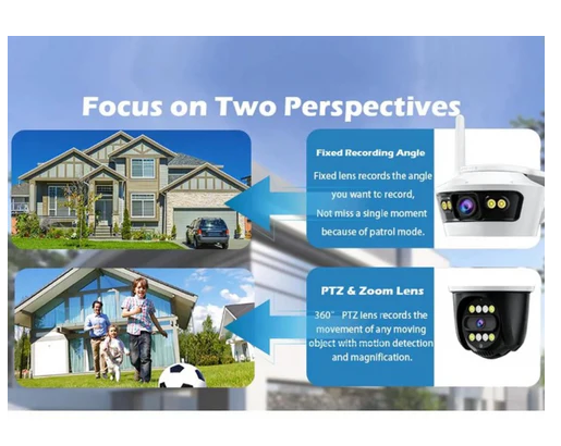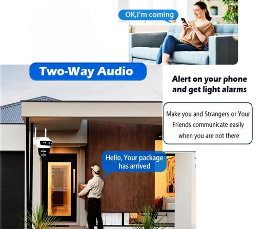 Imagini clare cu camera cu tehnologie AI.Are proprietati impermeabile.Se conecteaza la WI-FI 2.4G.Are microfon si difuzor. Camera are becuri LED si lumini infrarosii. Poate vedea imagini clare în întuneric. Se rotește la stânga și la dreapta la 355 de grade, în sus și în jos la 90 de grade dacă este detectată mișcare. Veți primi notificări instantanee prin intermediul smartphone-ului dvs. Acceptă SD de până la 256 GB.