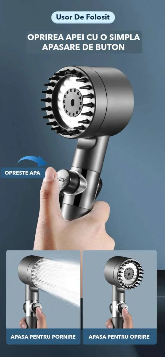 Acest cap de duș nu asigură doar igiena, ci și îmbunătățește starea dumneavoastră de bine, combinând curățenia, relaxarea și beneficiile unei ape mai purificate.