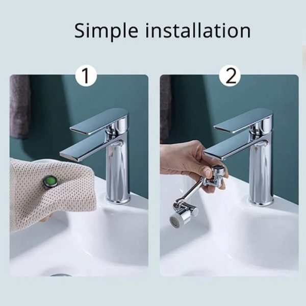 Este posibilă instalarea manuală fără instrumente, finalizată în câteva secunde. La instalarea prelungirii robinetului, aceasta se potrivește perfect cu garnitura de cauciuc care este inclusă în pachet, astfel încât să nu fie scurgeri de apă. Este compatibil cu majoritatea robinetelor și poate fi montat direct pe robinete cu un diametru exterior filet de 24 mm sau utilizat cu adaptorul pentru robinet furnizat pentru a se potrivi pe robinete cu un diametru interior filet de 20/22 mm.