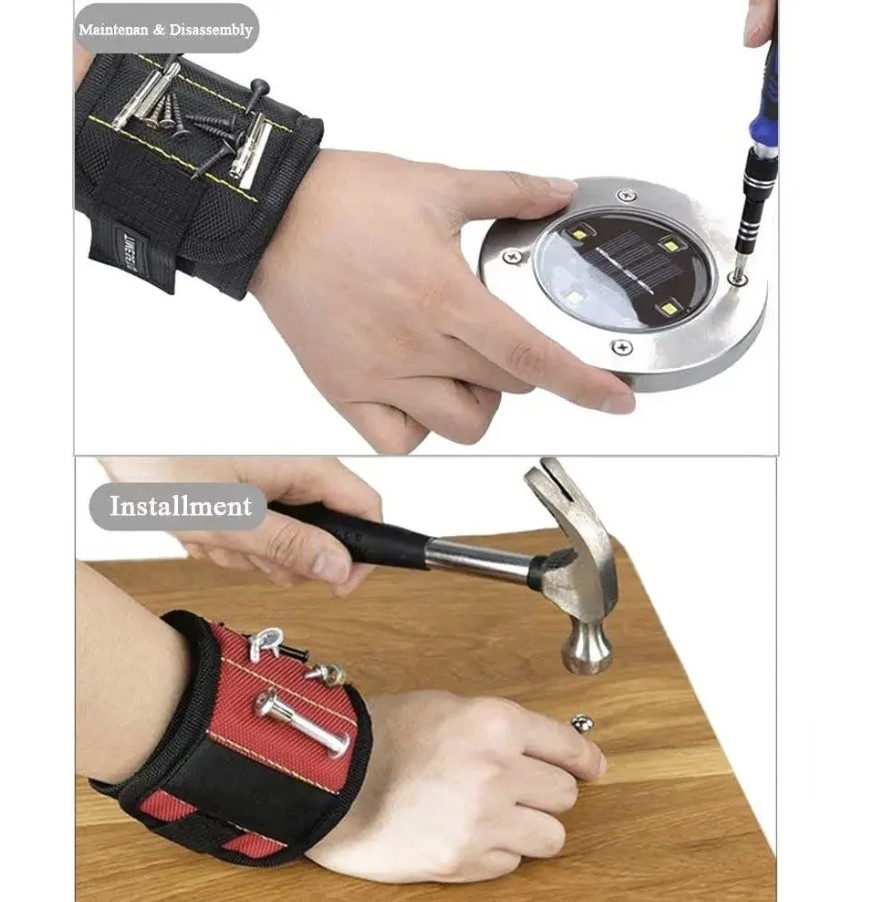 Manusa dispune de magneti puternici plasati strategic care va permit sa tineti cu usurinta suruburi, cuiuri, tinte, saibe si alte piese metalice mici pe incheietura mainii.