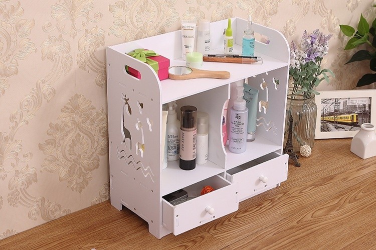 Raftul poate fi folosit în baie, dressing, dormitor sau în orice altă încăpere în care doriți să vă păstrați produsele cosmetice bine organizate.