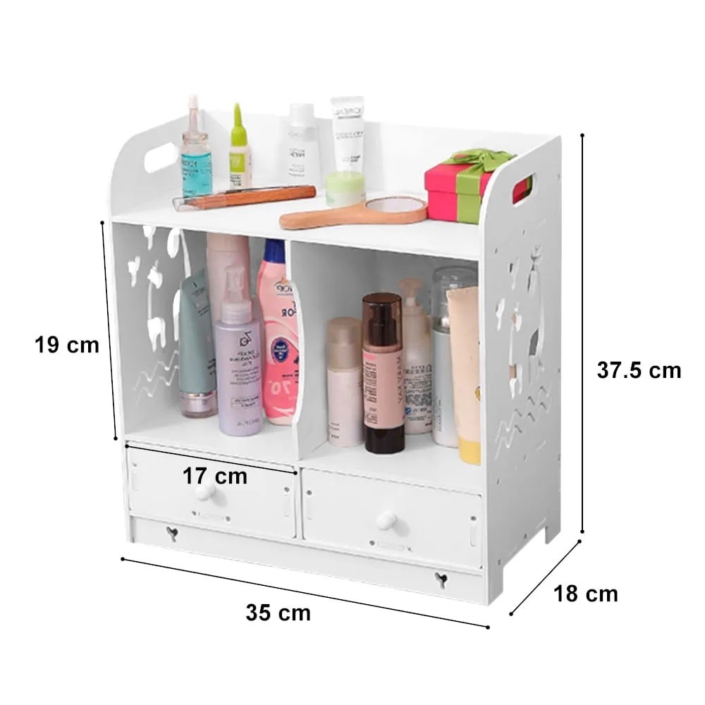 Cu dimensiunile de 35 x 18 cm, acest raft oferă un spațiu suficient pentru a depozita o gamă variată de produse cosmetice, inclusiv machiaj, creme, parfumuri și altele.