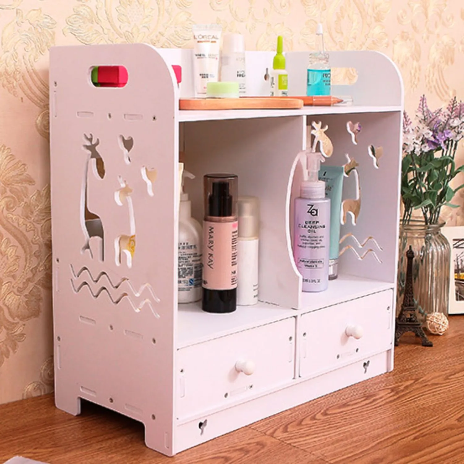 Acest produs este echipat cu mai multe compartimente sau rafturi pentru a vă ajuta să organizați produsele cosmetice în mod eficient. Aceasta vă permite să le grupați în funcție de tip și să le găsiți rapid atunci când aveți nevoie de ele.