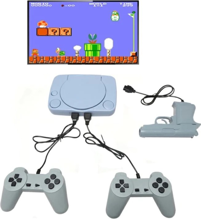 Aducem in atentia celor mici cat si persoanelor mature acest joc foarte distractiv Consola TV Game 50. Un joc care pentru unii dintre noi a reprezentat o mare parte a copilariei. Copilarie care azi este rezumata la alte jocuri si alte distractii. Nu este insa tarziu sa le aratati celor mici jocurile care pe noi ne-au marcat. Acest TV Game 50 joc de consola este dezvoltat pentru a oferi ore întregi de divertisment pentru întreaga familie, pentru cei care sunt pe un buget restrans, dar doresc să se bucure si sa petreaca timp de agrement cu copiii în loc de a merge la un scump get-departe sau pur si simplu doriti sa petreceti un week-end la domiciliu. Va puteti distra, relaxa, destinde cu numeroase jocuri si aplicatii, aventuri sunt putine dintre variantele oferit de acest producator. Acesta include 2 x gamepad-uri si 1 x arma cu laser, care va ofera mai multe opțiuni de controler.