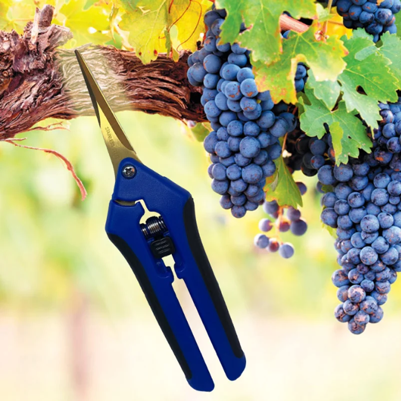 Foarfeca professionala cu lama curbata pentru recoltat struguri si alte fructe, livezi, plantatii viticole si horticole. Este conceputa cu un design ergonomic pentru a asigura confort si usurinta in manuire, fiind recunoscuta pentru calitate si performante. Manerul ergonomic poliamida armata cu fibra de sticla are sistem de anti-alunecare din cauciu, iar lamele din otel inoxidabil sunt protejate de un mecanism de inchidere accesibil, atunci cand foarfeca nu este folosita. Datorita materia este usoara, are lame ascutita curbata din otel inoxidabil lungi, conice: acestea sunt special concepute pentru o usoara recoltare si curatare a strugurilor si alte fructelor.