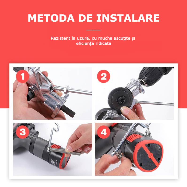 • Pentru a utiliza acest atasamentul, aveti nevoie de o bormasina strandard
