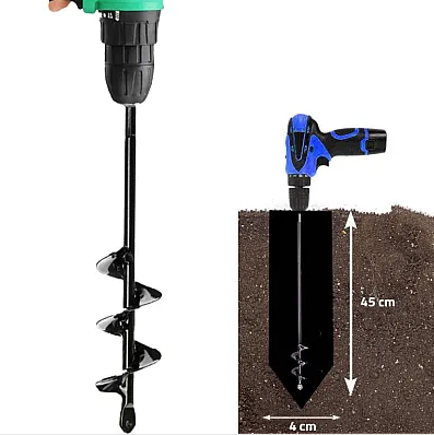 Acest burghiu de pământ este ideal pentru a fi utilizat în grădini și zone de agricultură, pentru a săpa șanțuri, a planta copaci și a găuri solul.