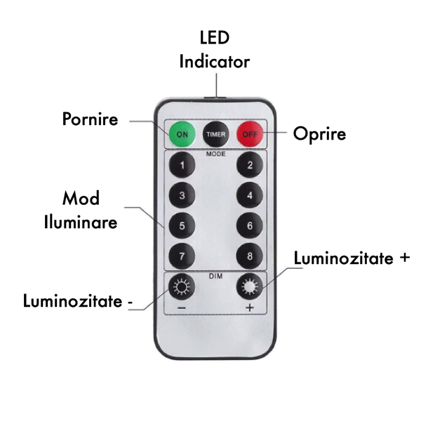 O vei putea instala peste perdea. In plus, se controleaza foarte usor din telecomanda. Poti seta modul de iluminare, luminozitatea si temporizatorul.