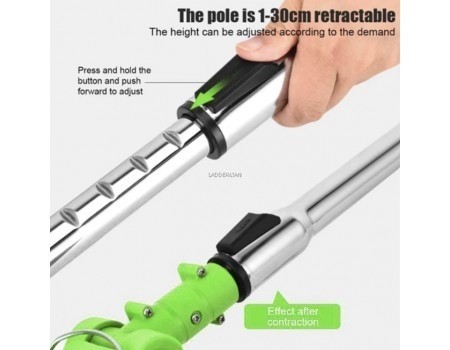 - Un buton pentru a regla unghiul de lucru, care este convenabil pentru taierea sub copac, coltul peretelui, marginea patului de flori etc.