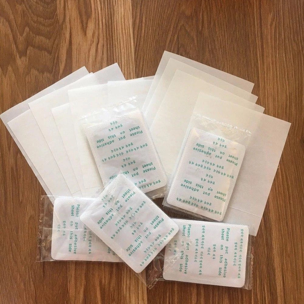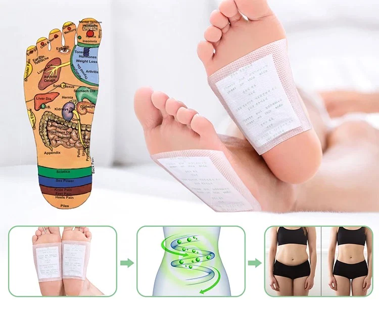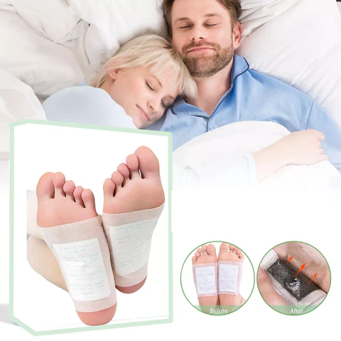 - Lipiti un plasture (cu partea scrisa) pe materialul adeziv, puneti plasturele pe talpa piciorului si fixati-l bine. Pentru cel mai bun efect plasturele trebuie aplicat inainte de culcare, pentru 6-10 ore;