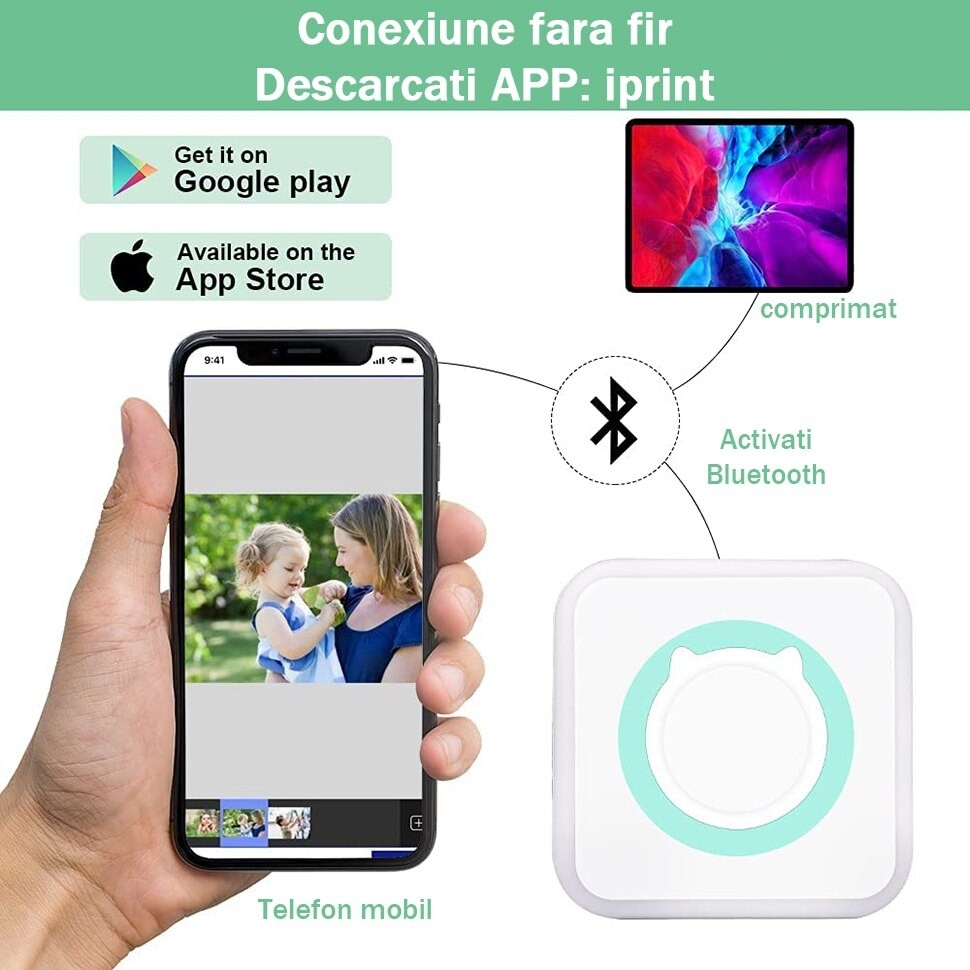 Conectati orice tip de smartphone usor si rapid prin Bluetooth cu aplicatia 'FunPrint' sau 'Iprint', in cateva secunde. - Recenzii